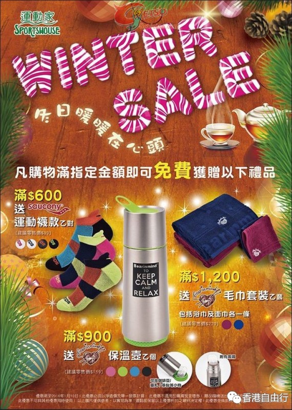 香港打折:运动家Winter Sale购物优惠(至16年1月10日);