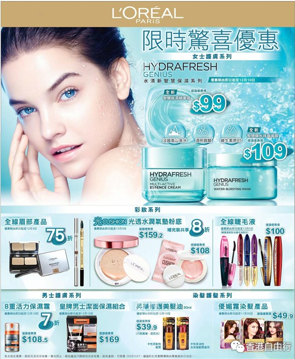 香港打折:L'OREAL 欧莱雅限时惊喜购物优惠(至15年12月10日)