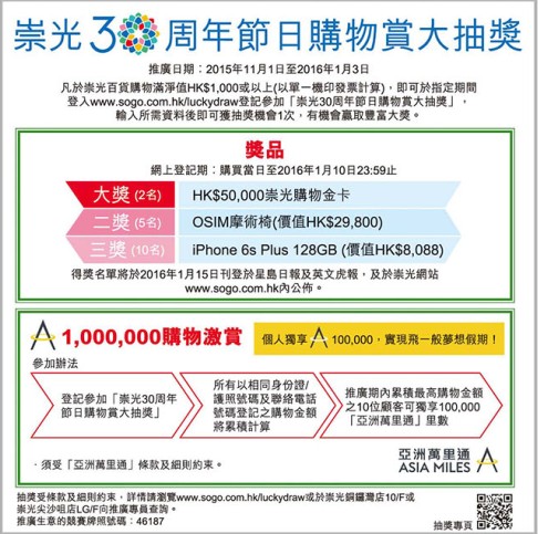 香港打折:sogo崇光百货铜锣湾店本周最新购物优惠(15年12月9日至12月15日)