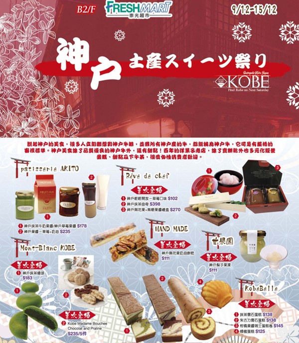 香港打折:sogo崇光百货铜锣湾店B2/F神户美食推荐(15年12月9日至12月15日)
