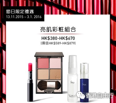 香港优惠:茵芙莎IPSA圣诞节限定礼遇(15年11月13至16年1月3日)