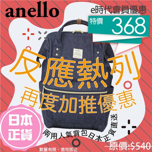 由于大家对Anello反应太热列,e时代继续加推优惠,数量有限,赶快来选购。日本正货直送Anello,款式好看,而且容量也很大,款式适合男女使用。另外,它同时可以当背包亦可手提使用,两种用法,方便大家配搭。今年日本都十分流行背背包,大家也想找一个休閒容易搭配的背包,就可以选择日本人气的Anello背包。