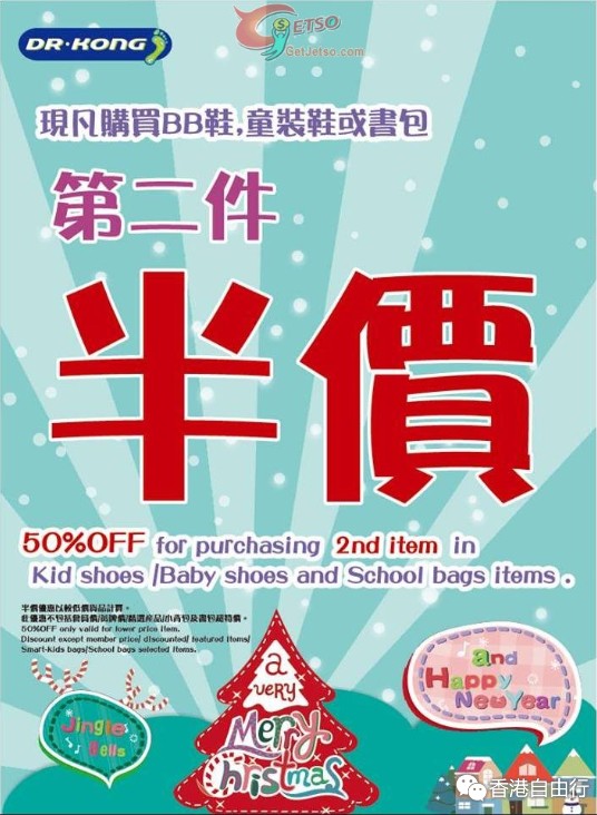香港打折:Dr.Kong BB鞋、童装鞋、书包及女装鞋第二对半价优惠(至15年12月20日)