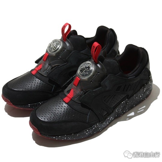 最新款DISC Blaze以暗黑色为主,全皮的鞋面配搭印上白色拨墨的鞋底,极有冬日雪花感觉。DISC SYSTEM亦一反以往实色设定,採用磨砂质地打造透明外壳。再植入红色的DISC拉环带和脚跟的Trapstar logo,最后配上血红色啫喱底,真系低调也能潮一番!睇嚟20号正式发售当日,又是要抢的节奏吧!