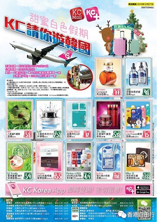 香港打折:KC Korea 店内化妆品最新购物优惠(至15年12月27日)