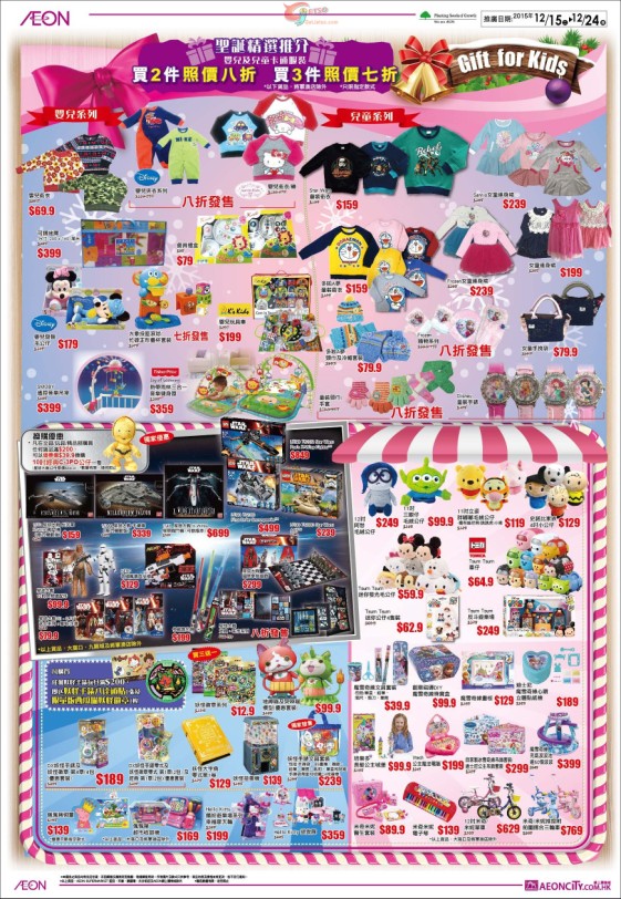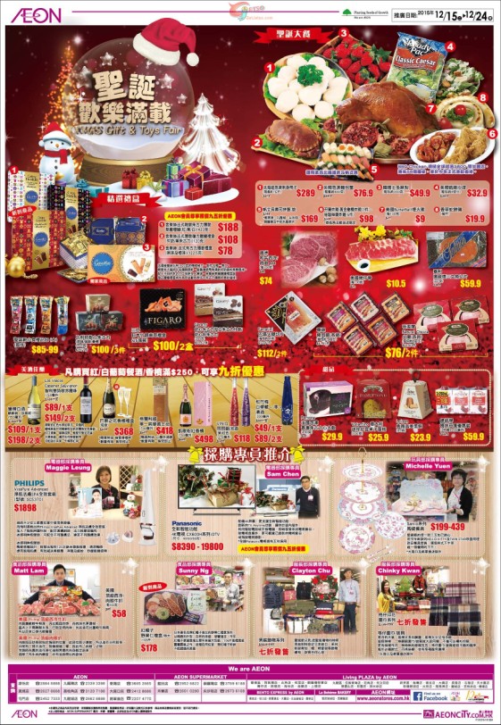 香港打折:AEON 圣诞欢乐满载/缤纷冬日外套展/冬至美食庆欢聚推广优惠(至15年12月24日)