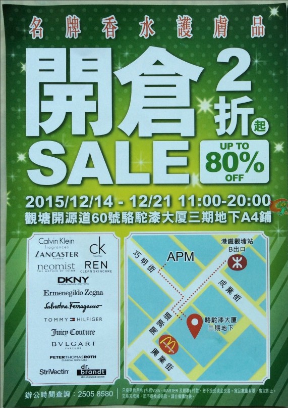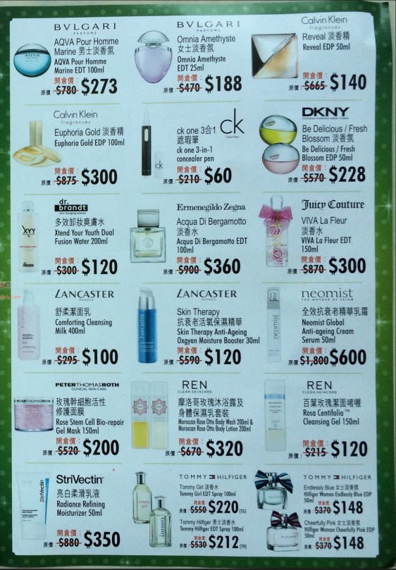 香港打折:名牌香水及护肤品低至2折开仓优惠(至15年12月21日)