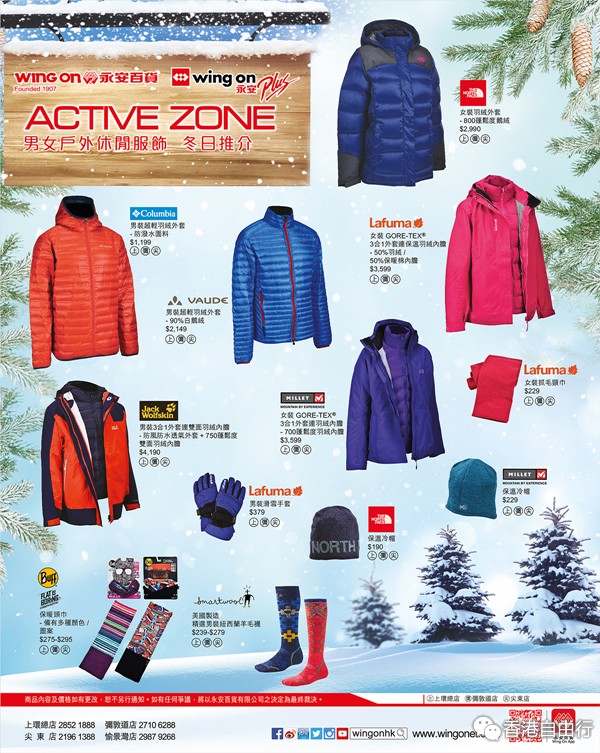 香港购物:永安百货2015男女户外休闲服饰冬日推介