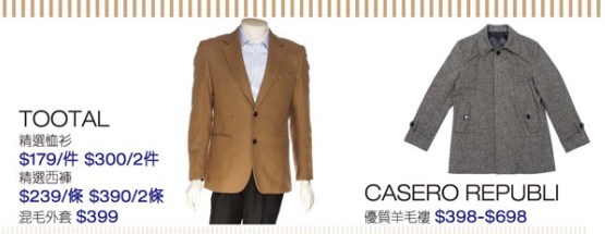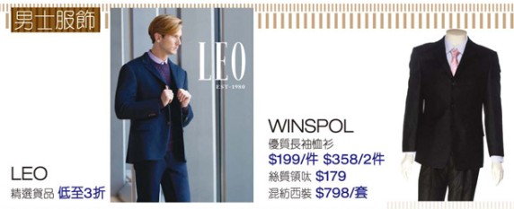 香港优惠:sogo崇光百货铜锣湾店9/F男士服饰及内衣展销(15年12月23日至12月29日)