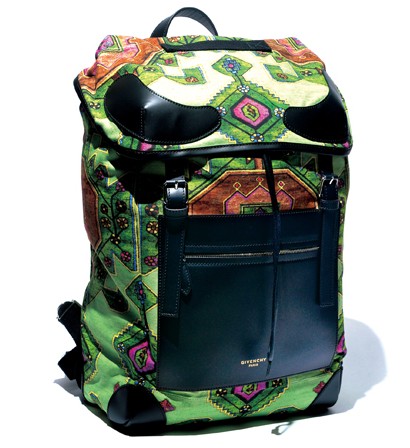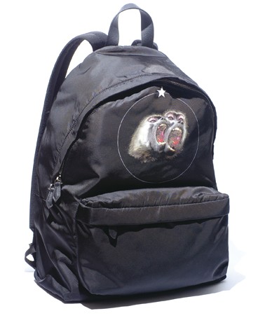 GIVENCHY BY RICCARDO TISCI的设计风格将美国文化的迷恋、宗敎的狂热及民族图腾从新调整,创造全新充满宗敎与诡异风格,最新2016早春系列RIDER BACKPACK继续以民族图腾出发,但打破了冬季红色主调,反而用上鲜艳绿色作互动。另外,贯彻动物元素除了恶犬外,最新用上猴子图案,并以数码打印技术把图案。