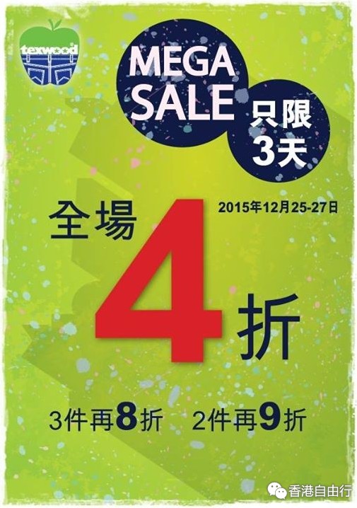 香港打折:千色Citistore荃湾店圣诞全场货品低至4折(15年12月25至27日)