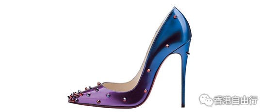 红底鞋另一标志设计,铆钉也被运用到了新款渐变高跟鞋中,又有满满的少女风,又不失摇滚酷女孩的味道。