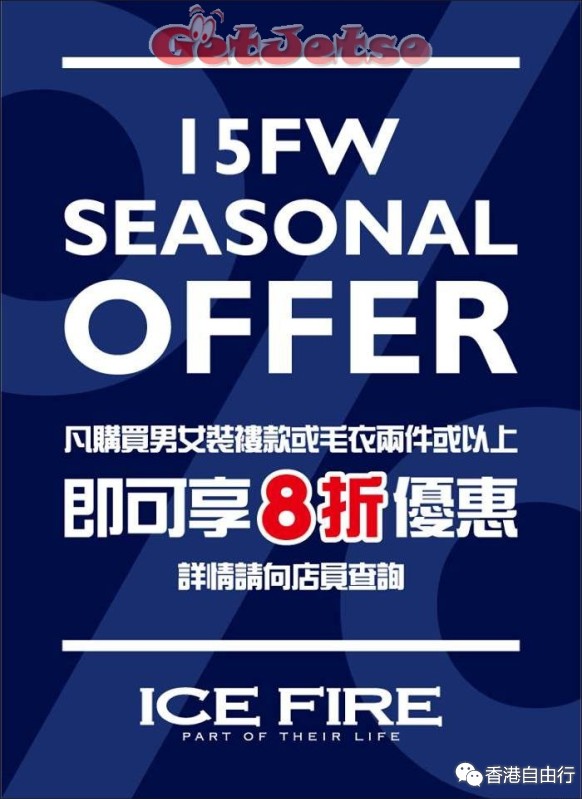香港打折:ICE FIRE 男女装褸款或毛衣两件8折优惠(至16年1月7日);