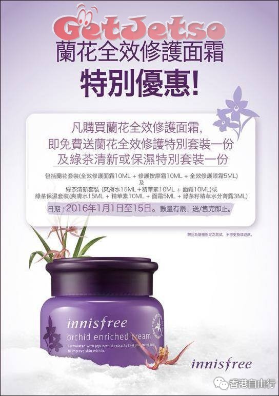 香港打折:Innisfree 兰花全效修护面霜购买优惠(至16年1月15日)