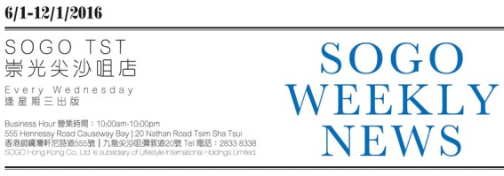香港打折:sogo崇光百货尖沙咀店本周最新购物优惠(16年1月6日至16年1月12日)