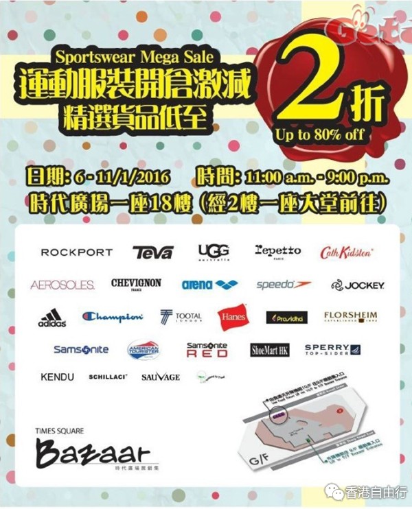 香港优惠:时代广场 Bazaar名牌运动服装低至2折开仓优惠(至2016年1月11日)