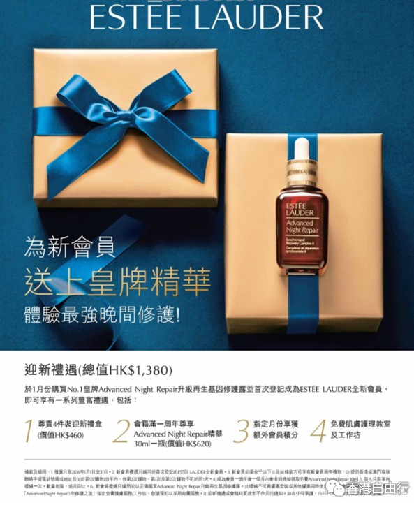 香港打折:雅诗兰黛Estee Lauder Advanced Night Repair面部精华购买及迎新优惠(至1月31日)