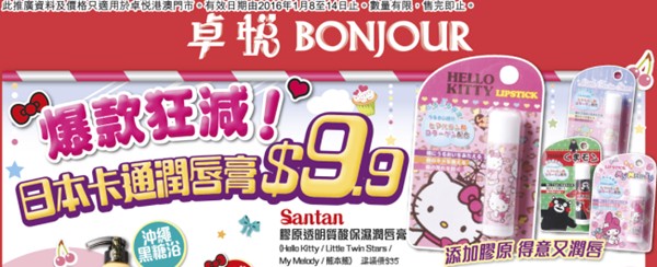 香港打折:卓悦Bonjour最新门市优惠(2016年1月8至2016年1月14日)