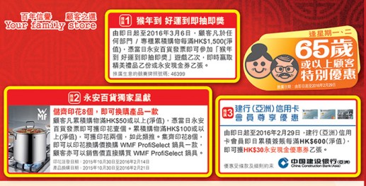香港打折:永安百货送旧迎新购物优惠(至16年2月12日)