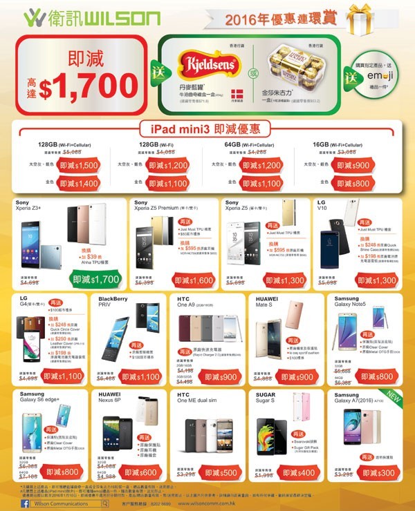 香港打折:卫讯最新手机优惠(16年1月8日起);