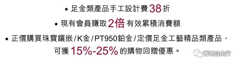 3,正价购买珠宝镶嵌/K金/PT950铂金/定价足金工艺精品类产品可以获15%-25%的返券,券可以直接消费下一个饰品。