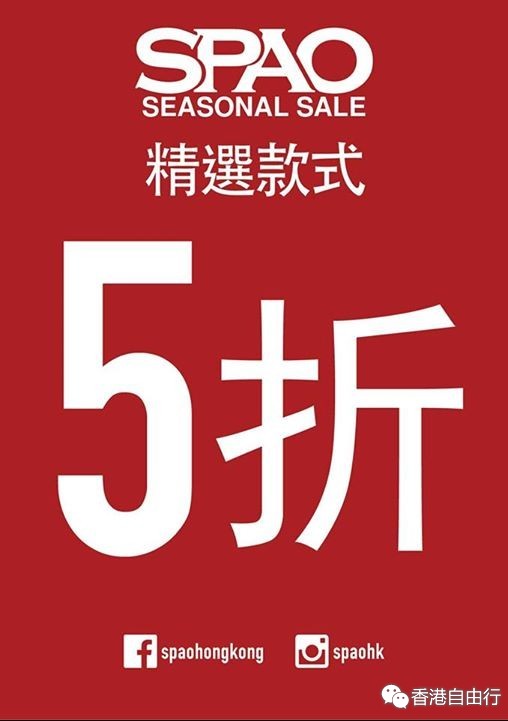 香港打折:SPAO精选款式低至5折优惠(16年1月9日起);
