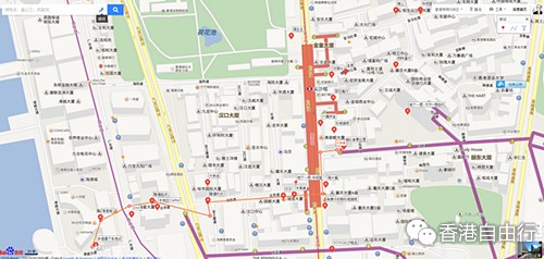 下车点上二楼【连卡弗、Facess】——海港城——从CHANEL出来——马路对面【DFS免税店】——隧道入口【DFS的南门出来右手边下电梯】——隧道出口——莎莎、卡莱美、华润堂等——重庆大厦(三楼大家乐吃饭)——SOGO百货——美丽都大厦采购【珍妮曲奇】——翠华餐厅——金丽化妆品——楼上——金英化妆品——雅施化妆品店——龙城大药房——地铁尖沙咀到旺角——C口出【朗豪坊】(E1口万宁、屈臣氏)——屈臣氏、MARKET PLACE BY JASONS【超市】、各种甜品店——一楼、二楼【各品牌化妆品】——二楼【麦当劳】——7楼【运动品牌折扣店】——公园等车——上车回广州
