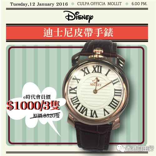 迪士尼皮带手表e时代会员价$1000/3只(原价$520/只)