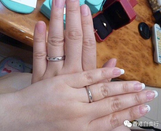 当时本来想买一个系列的对戒,不过老公说他带宽的比较好看~所以,就另外搭配了一款~戒指上面的钻石是方形滴~~