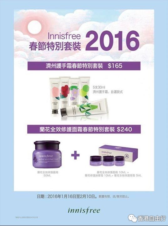 香港购物:Innisfree特别推出2016春节特别套装购物优惠(2016年1月16日至2月10日);