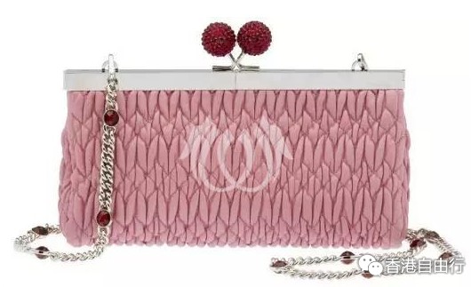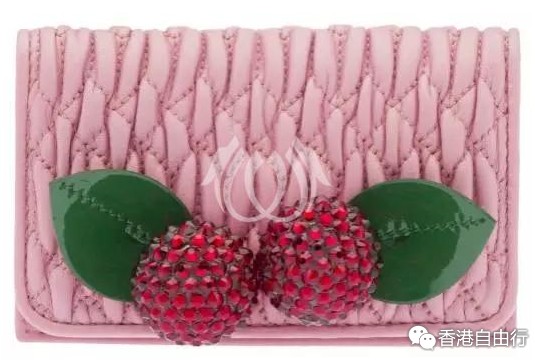 Miu Miu这次以甜美樱桃作系列图案,一对对闪石樱桃就好像情侣般甜甜蜜蜜,还有珠宝心型图案点缀,更印有「Miu Miu Loves」的标志!