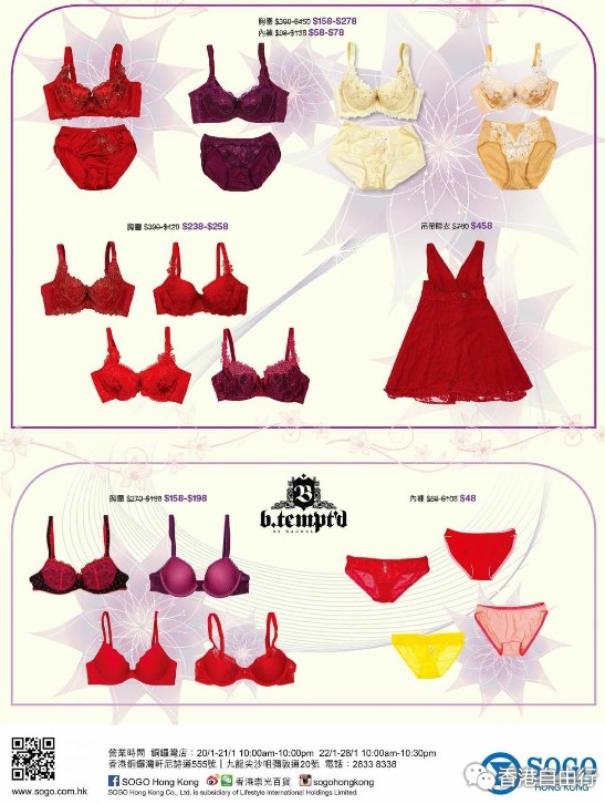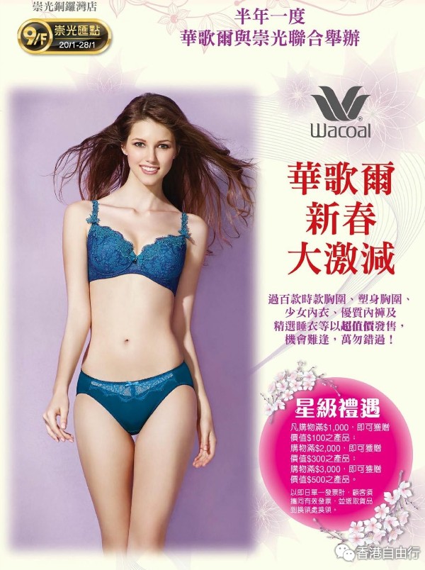 香港打折:华歌尔Wacoal 半年一度新春大激减优惠&铜锣湾崇光百货(16年1月20-28日)