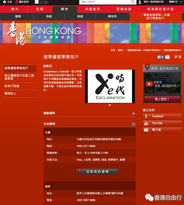 E时代 EXCLAMATION 为香港旅发局 认证优质零售商户!
