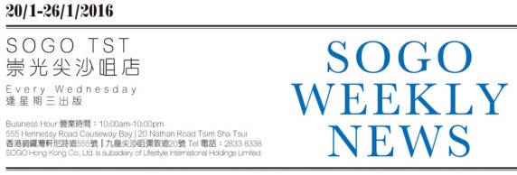 香港打折:sogo崇光百货尖沙咀店本周最新购物优惠(16年1月20日至16年1月26日)