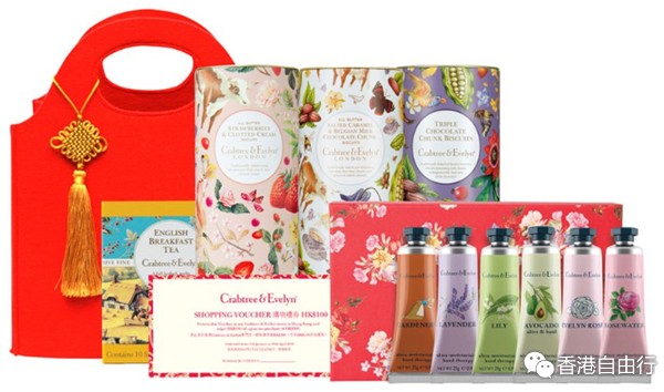 每年圣诞有不少人扫货的Crabtree & Evelyn,今年推出的贺年礼品同样吸引,当中最丰富的便是这个包含handcream、曲奇、茶叶和购物礼券的hamper,绝对是拜年送曲奇、蛋卷以外的好选择。购物满HK$680,更可获赠贺年利是封套装。