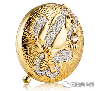 为了庆祝中国农历猴年,这枚珍藏版金粉饼在生机勃勃的金色莲花背景之上,刻画了一只代表着自信与智慧的灵猴,更以浅色宝石打造一枚蟠桃,象征整年的好运与财富。