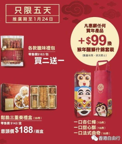 香港打折:美心集团精选贺年优惠(至16年1月24日)