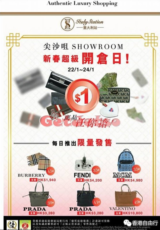 香港打折:意大利店名牌手袋低至1折开仓优惠(至16年1月24日)