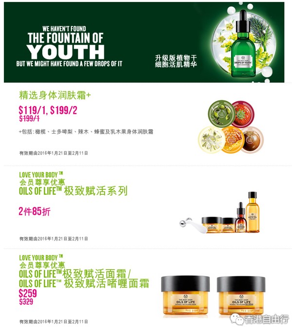 香港打折:the body shop最新店内优惠推广(16年1月21至2月11日)