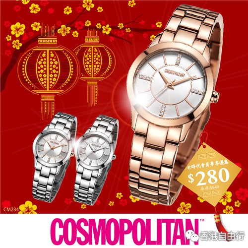 COSMO手表是由美国COSMOPOLITAN时尚杂志授权的时尚手表品牌,其设计时尚,个性鲜明,绝对是潮流的代表。手表用料名贵,日本原装进口石英机芯,表身採用不锈钢材质,镶嵌SWAROVSKI水晶,效果更为闪烁,而且还具有30米的生活防水性能。