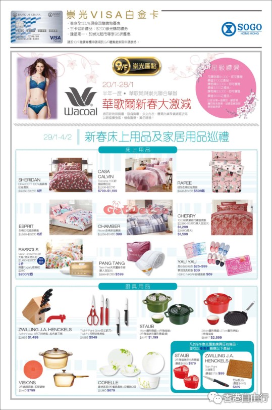 香港优惠:sogo崇光百货铜锣湾店9/F新春床上用品及家居用品巡礼(16年1月29日至16年2月4日)