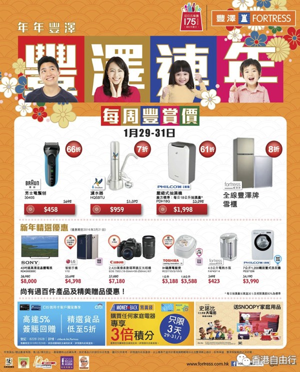 香港打折:丰泽 FORTRESS最新购物优惠/每周丰赏价(16年1月29日起)
