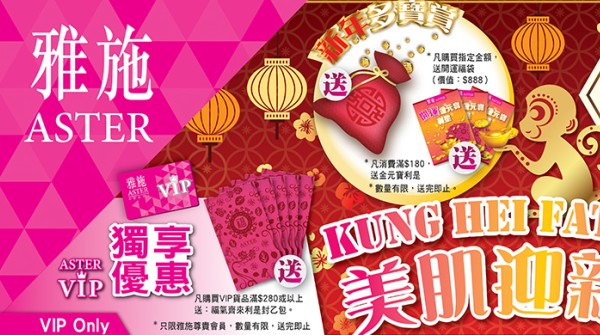 香港打折:雅施最新店内化妆品购物优惠(16年1月29日至2月12日)
