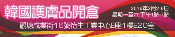 香港打折:日韩护肤品低至5折开仓优惠(至16年2月6日)