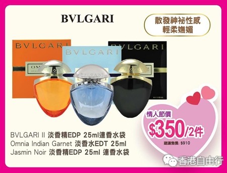 雅施情人节香水篇:安娜苏、Lanvin、宝格丽、CHOLE、CK 最低$190/2件