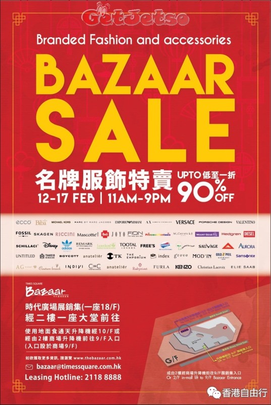 香港打折:时代广场名牌服饰特卖低至1折开仓优惠(至16年2月17日)