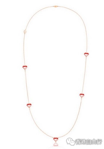 长度直达心脏部位的长项链正好表达你对爱人那触及心灵的深爱,镶满水晶的爱心图案散落分布在链子上,显得极其优雅。