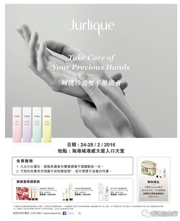 香港打折:Jurlique(茱莉蔻)呵护珍贵双手推广会精选套装优惠(至16年2月28日)