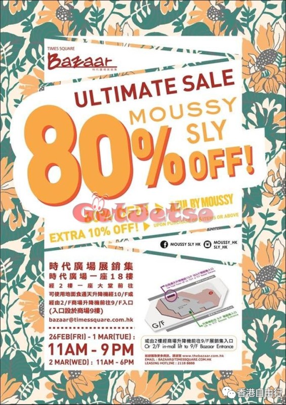 香港打折:时代广场MOUSSY‧SLY低至2折开仓优惠(至16年3月2日)