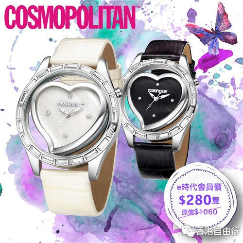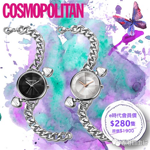 COSMO手表是由美国COSMOPOLITAN时尚杂志授权的时尚手表品牌,其设计时尚,个性鲜明,绝对是潮流的代表。手表用料名贵,日本原装进口石英机芯,表身採用不锈钢材质,镶嵌SWAROVSKI水晶,效果更为闪烁,而且还具有30米的生活防水性能。